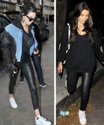 皮裤配上黑尾小白鞋,简简单单的黑白配色,却又穿出了不羁范,在配上牛仔外套,有点街头少女的feel。依旧是小白鞋配上黑色的皮裤以及黑色卫衣,原本是一身黑色,不过有了小白鞋的加持,减少了几分沉闷感。还是小白鞋配上质感亮泽的黑皮裤,经典的黑白配色,简约不失潮范,在穿一件衬衫还增加几分文艺范。