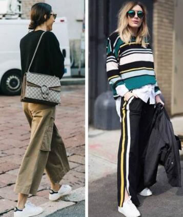 小白鞋配校服裤是相当的青春,对于学生党来说再合适不过啦。黑红撞色的校服裤配上三道杠小白鞋,既不失休闲运动范,又不乏青春活力范。红白相间的阔腿裤演的鲜艳显眼配一双小白鞋,既不会显得很花哨,有分外的显休闲。黑橘色的校服裤,低调又不乏亮眼,配上小白鞋之后,精简利落,随性自然。