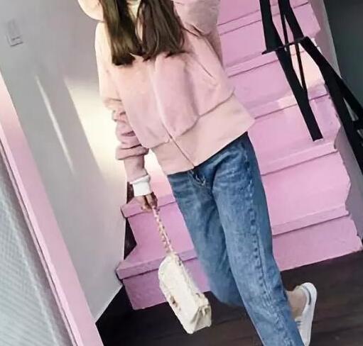 牛仔裤几乎可以搭配任何风格的上衣,粉色卫衣也不例外,尤其是蓝色的牛仔裤,粉与蓝的对比更显甜美俏丽,而且在视觉上也会有柔和舒适却又足够醒目的对比感。