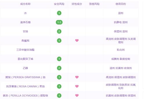 黛珂植物韵律乳液含有水、液体石蜡、甘油、角鲨烷、三异辛酸甘油酯、氢化聚异丁烯、乙醇、鳄梨(PERSEA GRATISSIMA)油、狗牙蔷薇(ROSA CANINA)果油、紫苏(PERILLA OCYMOIDES)提取物等成分。