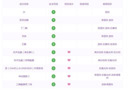 黛珂植物韵律保湿水含有水、双丙甘醇、丁二醇、甘油、乙醇、抗坏血酸(维生素C)、抗坏血酸二棕榈酸酯、茶(CAMELLIA SINENSIS)叶提取物、神经酰胺2、三磷酸腺苷二钠等成分。