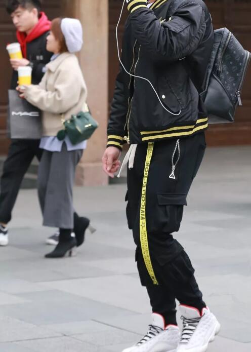 同时和工装裤的搭配就相对比较潮一点,DJ行业需要扮酷的小伙们可以借鉴这一点,高街运动风。