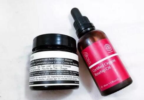 洁面后先用多一点的玫瑰果油在脸部按摩,把脏东西慢慢地溶出到皮肤表面,我是混合油皮,会格外注意鼻子和T区的按摩,大约5分钟以后用化妆棉把面部的脏东西和油脂擦拭掉,然后敷上清洁面膜。可以用的是伊索的柑橘去瑕清洁面膜,它主要针对脸上的痘印和痘痘。没有痘痘的大油皮,可以用伊索的樱草洁净面膜。如果皮肤属于中性,推荐用保湿滋润的蜂毒面膜。