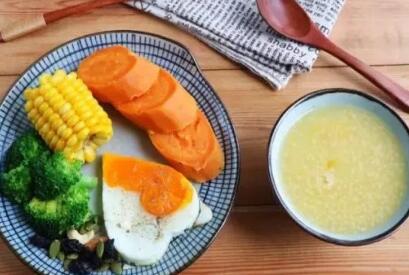 小米粥+煎鸡蛋+红薯+玉米+西兰花