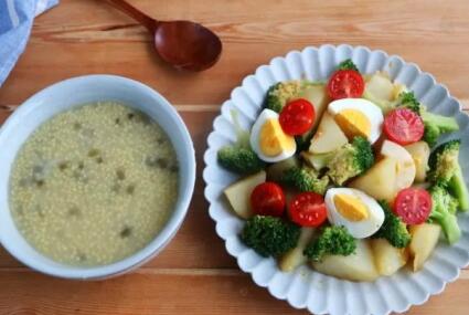 土豆+西兰花+鸡蛋+小米绿豆粥