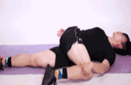 平躺,抬起右腿,左手放在右腿的膝盖上;轻轻向左侧拉动,然后膝盖落在左侧的地面上;这个动作保持三十秒,接着换为另一侧;做三组,一组五次。