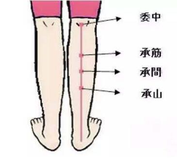 步行中,用一条腿支撑地面,另一条腿的脚面依次踢打支撑腿的腿肚子的承筋穴(小腿后面,当委中与承山连线上,委中下5寸)、承山穴(月国窝中央到脚跟连线的中点)然后交替进行,每次运动在80~100次为佳。
