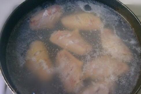 锅里加入适量水,滴入加入适量料酒烧开,下入鸡翅焯水,再次烧开煮一分钟捞起沥干水分
