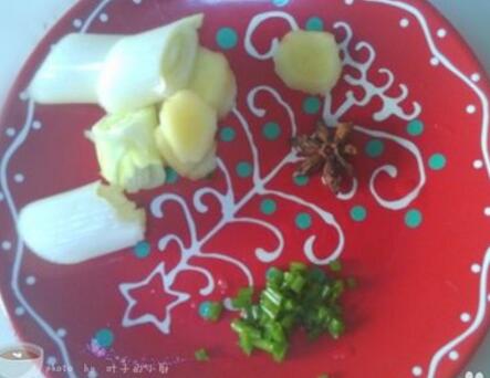 生姜切成片、大葱切成段,小葱切成葱花