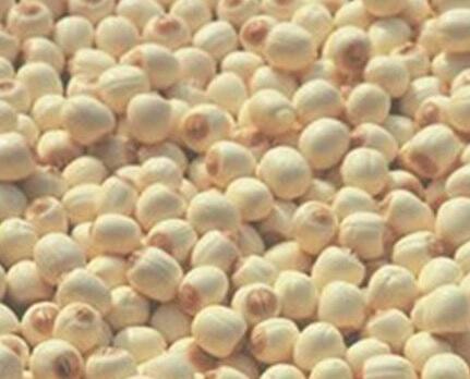 莲子,是睡莲科水生草本植物莲的种子。又称白莲、莲实、莲米、莲肉。莲,又称荷芙蓉、水芝。略呈椭圆形或类球形,长1.2~1.8cm,直径0.8~1.4cm。表面浅黄棕色至红棕色,有细纵纹和较宽的脉纹。一端中心呈乳头状突起,深棕色,多有裂口,其周边略下陷。质硬。种皮薄,不易剥离。子叶2个,黄白色,肥厚,中有空隙,具绿色莲子心。无臭,味甘、微涩。