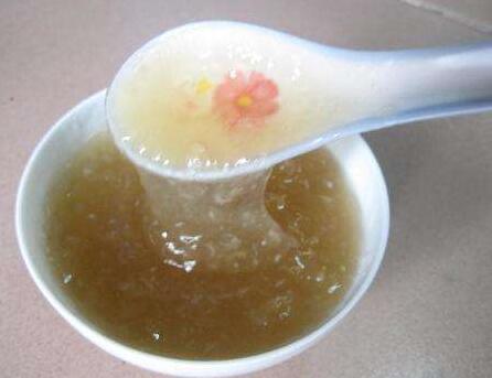 先用2瓷勺的冷开水将藕粉化开,成为水状。因为藕粉是无糖的,所以同学们可以根据口味加入适量的冰糖粉哦。再用95度以上的开水一边冲藕粉一边不停搅动(要像研墨一样慢慢搅拌不要急呦),直到粉羹呈现很均匀的透明糊状为止。