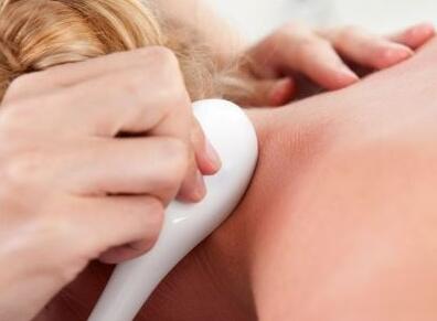 点揉翳风、头维、太阳,然后刮前臂合谷、列缺,再刮下肢阳陵泉至足三里,最后刮血海。