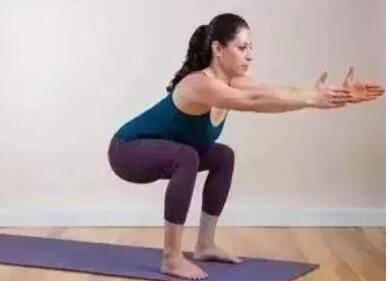 类似于深蹲的状态,依旧是站姿准备,伸手臂向前伸直,目光正视前方;臀部向下坐去,腹部最好是贴近于大腿上,大腿和小腿之间依旧是呈垂直的状态,注意身体保持住平衡;上半身可以微微向前倾斜,保持这个动作一分钟即可。