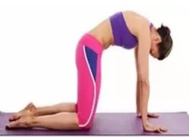 4、呼气的时候将背部弓起,然后头部自然带动到面部朝下,肩膀依旧是放松的状态,保持这样的呼吸动作重复10次即可。