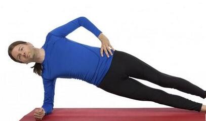 动作4:侧卧,右手撑地,支撑身体重心,左腿伸直,右腿弯曲,并用左手扶,用力慢慢拉向腹部。吸气,收缩腹直迹重复多次。