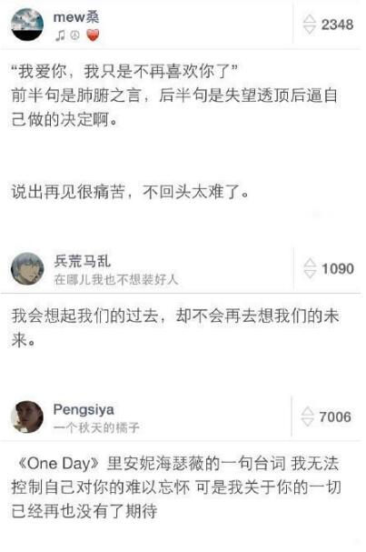不知道那是经历了多少个哭着睡着的夜晚,多少个看着屏幕发呆的时刻,多少个忍住不去联系你的冲动,多少个想要放手的心痛才最终决定的结果。这道疤痕不知被重复扯烂多少遍,才最终不再疼痛,最终决定就这样吧!