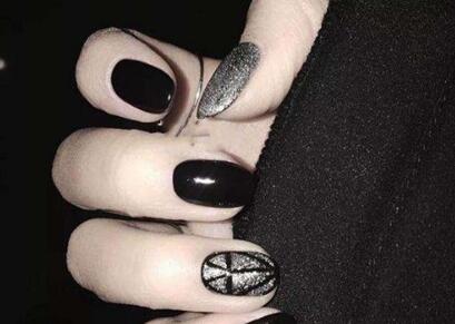 这一款美甲是复古经典的法式,透明指甲和黑色甲油形成层次,细碎的闪片在甲面上闪闪发光,边角利落的玻璃纸打造几何图形的棱角,为星空加入了几分神秘。恰到好处的闪光感会让指尖散发魅力,黑色又有叛逆朋克风,是一款非常适合少女的美甲造型。它的制作只需要四步就可以完成,因此女生自制也很容易。