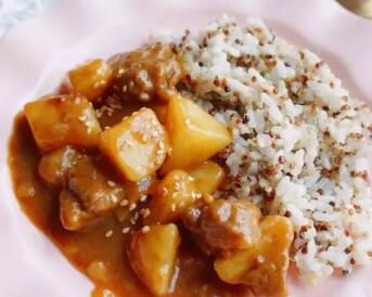 「咖喱排骨藜麦饭+牛奶+丑柑」