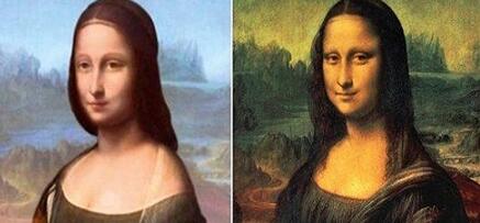 经过数码技术处理,用另一张达芬奇的画覆盖,还原得到蒙娜丽莎的原貌。这个发现真是让人吃惊,蒙娜丽莎还有另一种样子。
