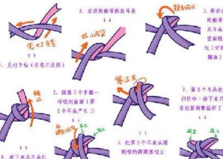 第五步:将后面的耳朵同时向两边拉再慢慢调整耳朵的大小,拉紧以后一个双蝴蝶结就诞生了。