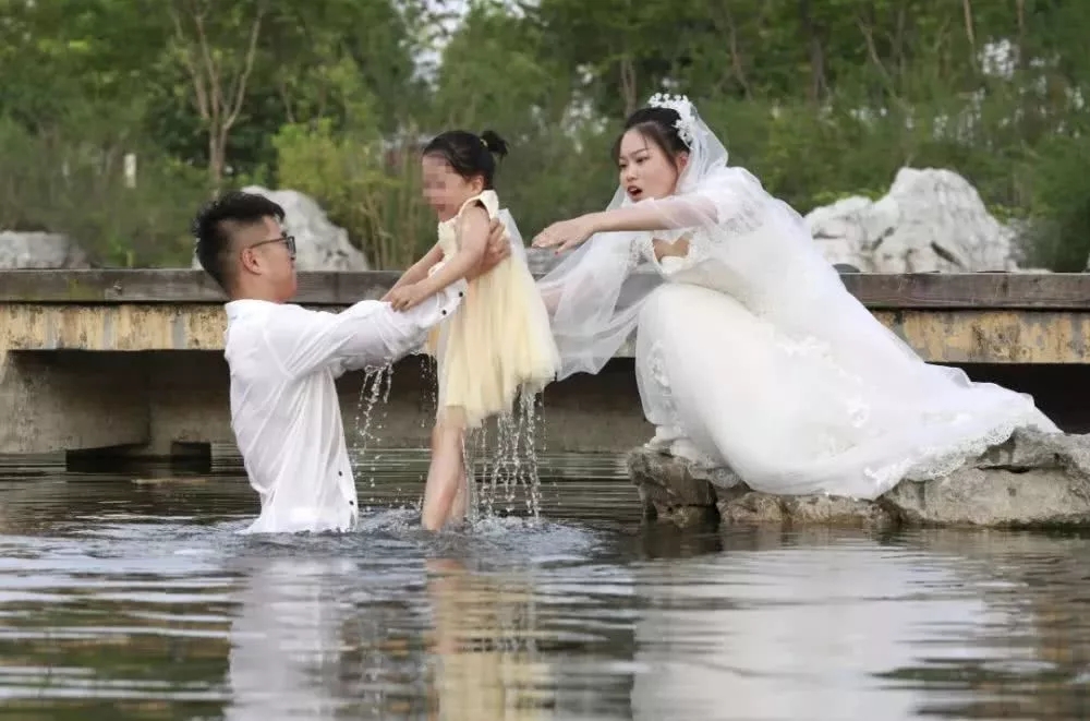 可是新郎却跳进河里,