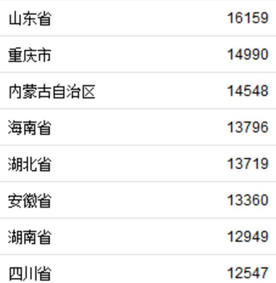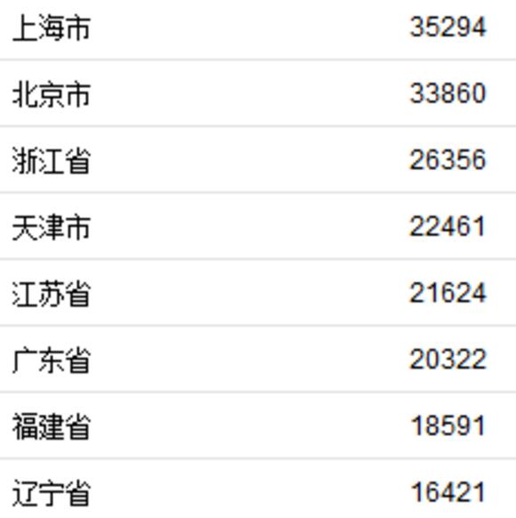 以全国“平均线”15294元来看,有9省份人均可支配收入超过全国水平。分别为上海、北京、浙江、天津、江苏、广东、福建、辽宁、山东。