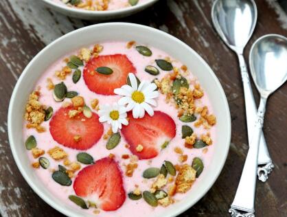 在酷热的夏季,女性需要犒劳一下自己,做道美味的冰品-----草莓思慕雪碗,食材随意添加,做为营养的减肥餐也是不错,赶紧做上一碗来吃吧!