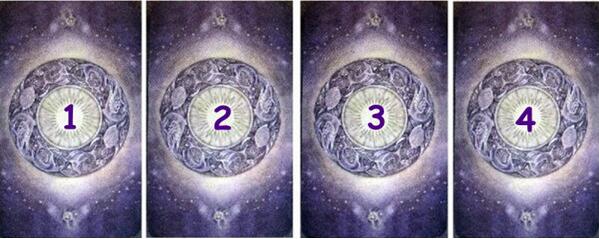 现在让自己静下心来,做三次缓慢而深长的深呼吸,完全地,放空你的头脑。当你准备好,从上面的四张牌里,选择一张出来,也许这个塔罗牌预测会告诉你答案。