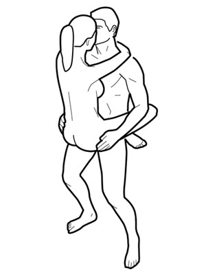 站立式对男女而言都是难度最高的性交姿势,因为女伴通常都要让男性在某些时间承托她的重量。如男女双方是面对面,就要用到身体核心肌肉和大腿力量;如女伴是单腿着地,那么就必须要用到腿部的力量,保持直立,同时身体核心肌肉则要用力,以确保平衡;如女伴双脚都盘在男性身上,女伴就需要有良好的手臂力量才能抱住对方。这就是说,无论是哪一种,在站立式中,女伴都必须具有良好的体能。如果男女双方朝向同一个方向,那么锻炼的肌肉就跟后进式一样:女伴需要用核心肌肉维持平衡,她可通过用双手扶墙壁或者床头来提高对伴侣的反应动作。