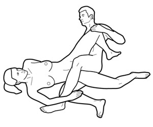 对女性而言,这是种被动式的性交姿势,也是最传统的方式,在觉得懒惰、疲劳或毫无“性趣”时常用。实际上,这个姿势可以起到很有用的健身效果,但这取决于女性的热情程度。这个动作常会让女性感觉到腰腹非常费力,但可以通过抬高自己的骨盆来加强核心肌肉的力量,而不是后背。否则,可能扭伤背部肌肉或造成其他的损伤,且达到的兴奋效果也不好。而随着男伴越来越剧烈的撞击,女性臀部做的挤压动作就会越来越多,所以这个性交姿势还能锻炼女性的臀部。