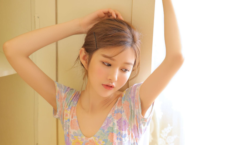 小翘臀下的腿细而长,穿着条粉色的小热裤就像没穿裤子一样,都能看到大腿根儿了。