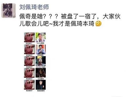 近日,短片《啥是佩奇》引爆社交平台,王思聪、任素汐等人纷纷转发。18日,知名演员刘佩琦在朋友圈发文称:佩奇是啥???被盘了一宿了,大家伙歇会儿吧~我才是佩琦本琦。并配了一组表情包,十分搞笑。