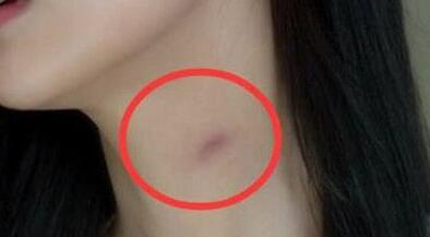 种草莓例如在颈根部,因用力过猛而留下吻痕。此“痕迹”并不是不会消失的!一般在2~3天便逐渐变淡,继而7天内消失无痕。
