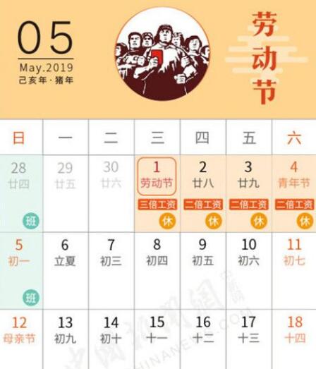 在此前国务院公布的2019年放假安排中,原本只安排今年5月1日放假1天(2019年5月1日逢周三不调休,仅在当天放假)。很多人感叹今年“五一”小长假没有了。