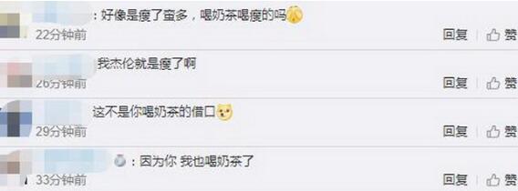 而网友们纷纷留言:“伦哥,你是怎么瘦下来吗?是要多喝奶茶吗?“,”哥你这是喝奶茶的借口,我以后都这样说”,“真的瘦了好多啊!又是一个‘商业吹捧’。”“杰伦你放心,为了不让你喝奶茶成为借口,我怎么样都会认出你的。”