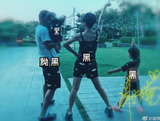 6月24日,谢楠在微博晒出全家福,并配文:“一家人就是要整整齐齐”。照片中吴京谢楠一家四口均穿着黑色的亲子装,谢楠还给吴京身上打上了“黝黑”的标签,自己和两个孩子则是“黑”,逗趣地回应了前一日吴京因肤色黝黑上热搜一事。
