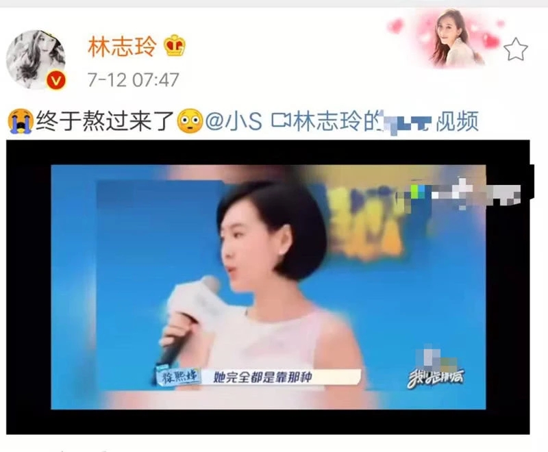 近日,小S在某综艺中公开否认了与林志玲的不合传闻,坦诚地表态:我想没有人会不喜欢志玲。而今天林志玲也在社交平台发布了节目中的这一视频片段,配文“哭诉”:终于熬过来了。