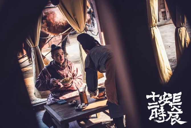 《长安十二时辰》改编自网红作家马伯庸的同名人气小说,又有当红偶像明星和实力演员的加盟,可以说自带话题品相。不过,该剧播出至今,盘桓在热搜榜上的话题要么细数剧中的诸多美食,比如水晶柿子、水盆羊肉、三勒浆、薄荷叶,俨然将电视剧解读成了“舌尖上的长安”;要么盘点剧中的青玉芙蓉冠、胡人捧壶钟漏、置放于冥器店里的唐三彩,将该剧看成了大唐版的“国家宝藏”;还有的以学术的深度、普及的热情考据着“簪子应该横着插还是竖着插”“旅贲军的甲胄”“女性人物的妆容与髻鬟”等学理性议题。