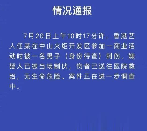 7月20日,任达华出席活动被刺伤的事,让网友十分的关注。事后任达华被送院就诊治疗,随后经纪公司回应表示暂无大碍,关于凶徒此次伤人的原因,也引发了吃瓜群众热议。