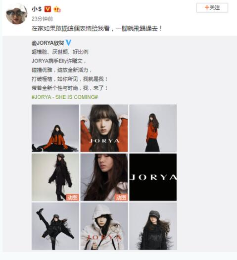 小S女儿许曦文为某品牌拍摄了一组照片,照片的主题是“超模脸,厌世颜”,而许曦文也完美演绎了主题,表现力十足。小S转发全力支持女儿,却口硬心软的表示:“在家如果敢摆这个表情给我看,一脚就飞踢过去!”