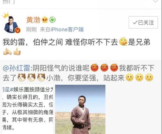 黄渤也 孙红雷,回怼:我的雷,伯仲之间,难怪你听不下去,是兄弟。