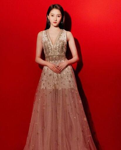 关晓彤红毯造型,被网友评价有点美呢,造型师终于正常发挥了一回……深v长裙很适合她,下半身半透视设计秀出美腿优势。