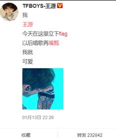 近日,王源在某活动上唱歌的时候,高音破音后笑场。此事瞬间登上微博热搜,引起网友的围观和热议。并在微博上立下嘴瓢flag:唱歌再嘴瓢就可爱