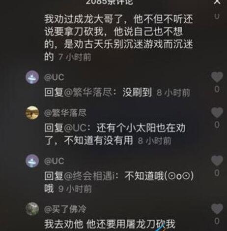 这个梗是调侃成龙代言游戏,最近成龙大哥也代言了传奇游戏,因为此前成龙大哥也代言过很多产品,各种被网友调侃,所以这次游戏代言视频一出,就有人调侃说劝劝成龙大哥不要沉迷游戏。然后这个梗就火了,现在抖音视频很多人都在评论区刷。