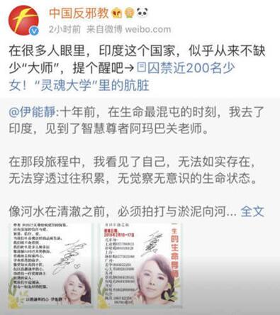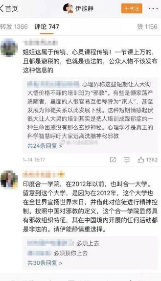 而有网友则针对这条微博犀利指出,伊能静此举属于“传销”,公众人物不该发布此类消息。还有网友表示,伊能静谈及的灵修课程存在巨大争议,其在中国境内开展的活动甚至存在合法性质疑。