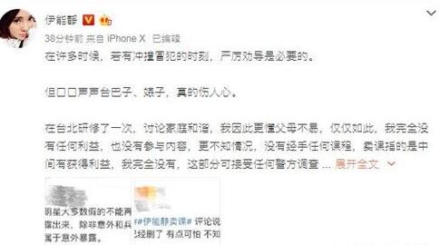 近日,伊能静在微博上卖课的事相信很多网友都知道,但是被网友质疑,随后就将微博删除,但并没有立即做出回应。在1月16日她发文回应这件事,但又引起了网友的不满