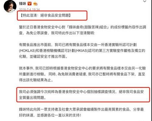 这也并非是“锋味曲奇”第一次被爆出食物安全问题,早在2018年7月就有消息报道说这个曲奇疑似糖分过高,谢霆锋当时也做出了回应说:“绝非食品安全问题,只是个别抽样调查结果”。