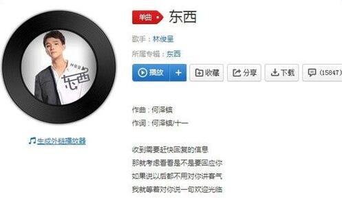 据悉这首歌叫做《东西》,相信很多人可能不知道这首歌的歌名,但是一定都听过这首歌。《东西》的原唱是歌手林俊呈,林俊呈是一个90后的原创歌手,虽然现在作品不多,但是从这首大火的《东西》中就可以看出他的才华。