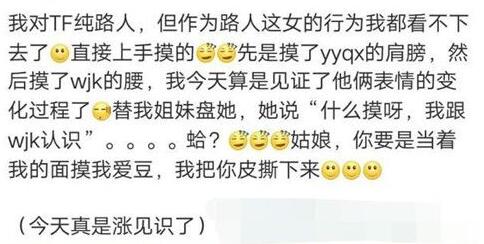 那就是有一个私生饭的粉丝竟然先摸了易烊千玺的肩膀,然后摸了王俊凯的腰,然后有粉丝看不过去问她,为什么要摸,她说:什么摸啊。我跟王俊凯认识。这真的是让人醉了了,这要是真的认识,是这样的吗?