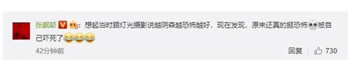 最近张靓颖开演唱会,很多人也是表示现场还是那么的好听,不过当导播将镜头切换到张靓颖的时候,是一副很阴森的画面,网友也是表示没想到画面这么的阴森。近日有网友晒出一段张靓颖表演现场的视频,视频中张靓颖躺在舞台上,灯光阴森,看起来有些恐怖,随即引起热议。很显然本尊是被热搜吓到了。张靓颖在自己微博回应了“特写吓一跳”一事,表示:“想起当时跟灯光摄影说越阴森越恐怖越好,现在发现,原来还真的挺恐怖!”“被自己吓死了!”十分搞笑。